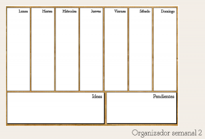 En el organizador semanal que os proponemos, tendremos un espacio para anotar tanto las ideas y futuros proyectos, como para anotar todo aquello que tenemos pendiente, lo que nos ayudará a que no caigan en el olvido.